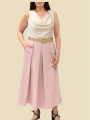 Gonna lunga a campana con cintura e tasche.