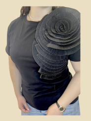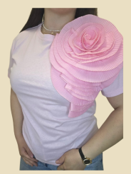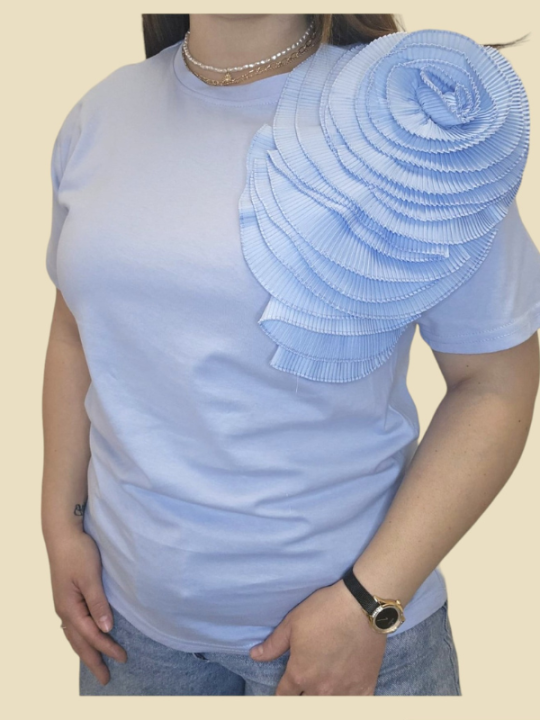 T-Shirt in 4 colorazioni con dettaglio rosa in rouches.