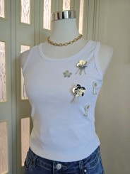 Canotta a costine con decorazione fiori in argento, elasticizzata.