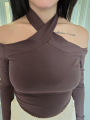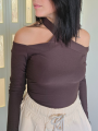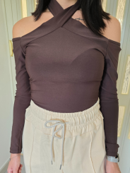 Body marrone manica lunga, con spalle scoperte e incrocio sul collo.