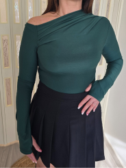 Body con scollo asimmetrico arricciato, manica lunga con fori per pollici.