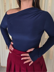 Body con scollo asimmetrico arricciato, manica lunga con fori per pollici.