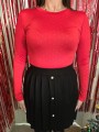 Body rosso ricoperto di strass solo lato fronte. Manica lunga, girocollo rotondo, elasticizzato.