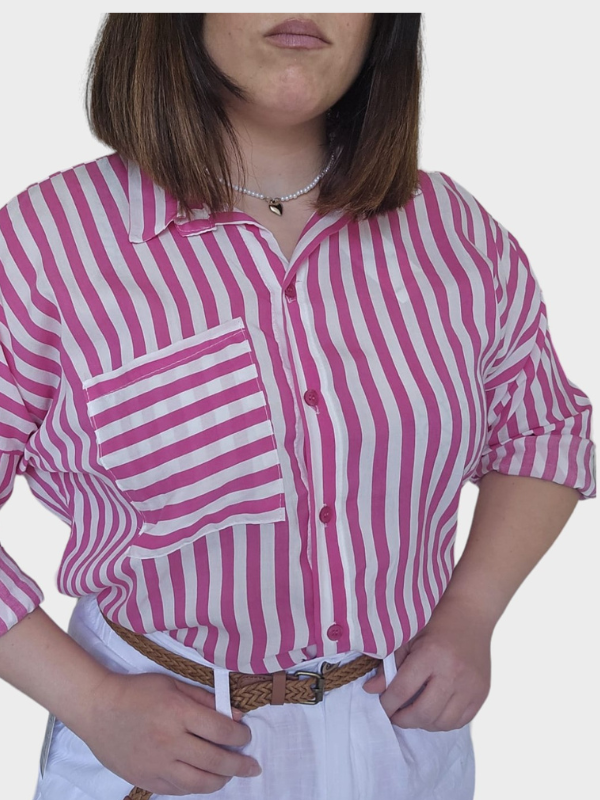 Camicia a righe fucsia a maniche lunghe con taschino.