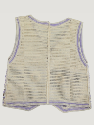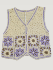 Gilet in maglia con bottoncini e decorazioni in lilla.