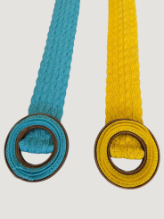 Cintura con cerchio e intrecciature. 80% carta 20% plastica.