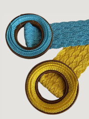Cintura con cerchio e intrecciature. 80% carta 20% plastica.