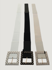 Cintura elasticizzata in tre colorazioni: beige, nera, bianca.
