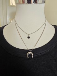 Collana con sole e luna in argento e in oro. Chiusura con gancio.