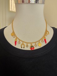 Collana con catena doppia con charm portafortuna. Chiusura con gancio.