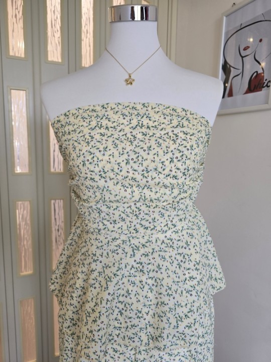 - Top senza spalline, orlo finale svasato, drappeggiato sul retro sulla parte in vita.
