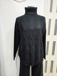 -Maglione a collo alto a costine con motivo trecce solo sulla parte frontale.