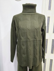 -Maglione a collo alto a costine con motivo trecce solo sulla parte frontale.