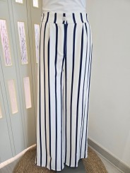 -Pantalone a palazzo con chiusura bottone e cerniera, elasticizzato sul retro.