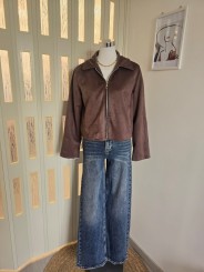 Giacca in camoscio, con chiusura cerniera con zip, manica lunga, tasche laterali.