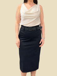 Gonna a tubino elasticizzata con cintura e spacco posteriore.