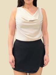 Pantagonna con zip laterale e tasche finte posteriori in due colorazioni: nero e beige.