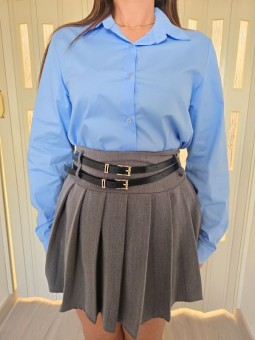 Gonna a pieghe, con chiusura zip laterale. 2 Cinture nere removibili.