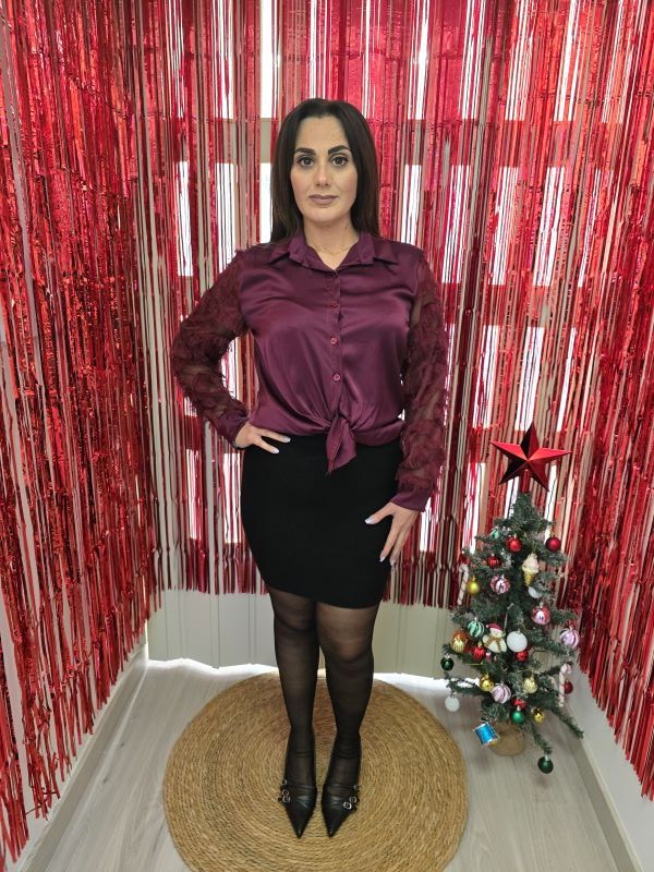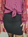 Gonna nera aderente, in maglia, a costine orizzontali. Elasticizzata.