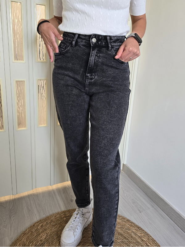 Jeans modello mom fit, colore grigio.