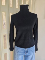 Maglioncino collo alto a costine, manica lunga con polsino stretto a costine con bottoni in oro. Elasticizzata.
