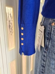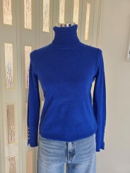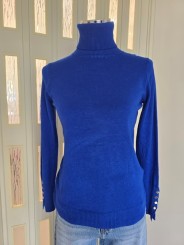 Maglioncino collo alto a costine, manica lunga con polsino stretto a costine con bottoni in oro. Elasticizzata.