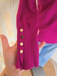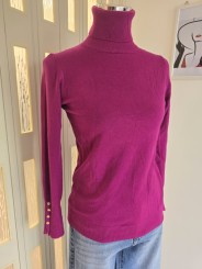 Maglioncino collo alto a costine, manica lunga con polsino stretto a costine con bottoni in oro. Elasticizzata.