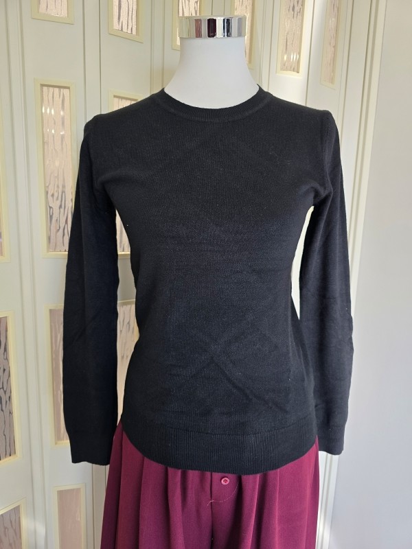 Maglioncino a costine, girocollo, con polsini stretti, orlo a costine più doppio.