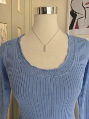Maglia a costine, manica lunga, con scollatura profonda a U, con orli in lavorazione crochet.