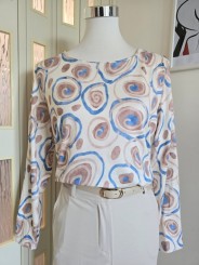Maglia con fantasia cerchi, manica lunga, scollo rotondo.
