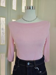 Maglia scollo a barca, manica 3/4, tessuto leggero, semi trasparente, elasticizzata.