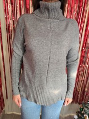 Maglia con colletto e polsini a costine, orlo finale a costine con spacchi laterali.