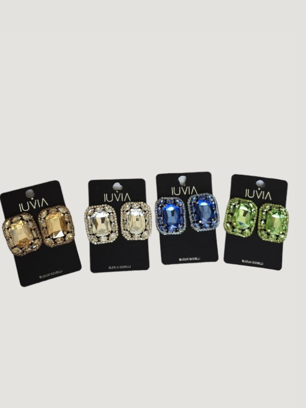 Orecchini a forma quadrata in 4 colorazioni, con chiusura clip.