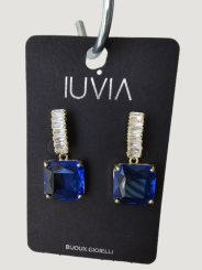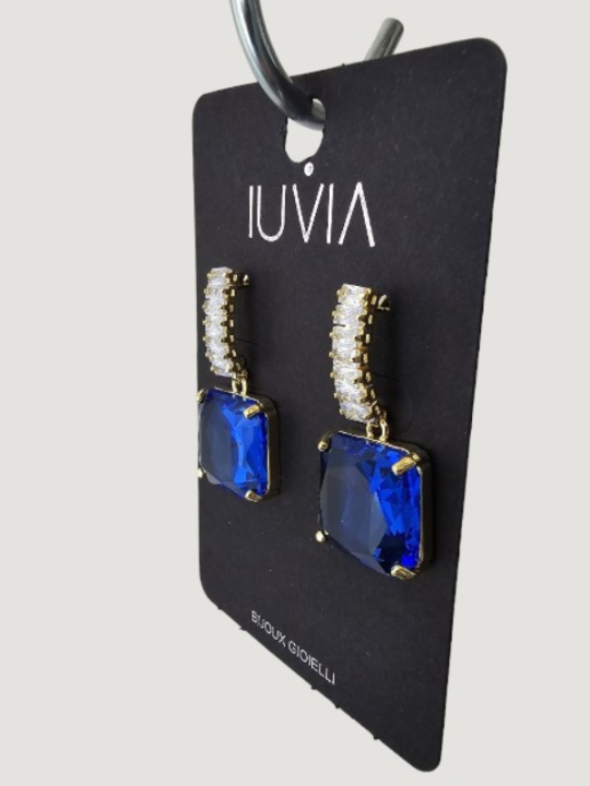 Orecchini pendenti con strass e pietra quadrata in blu e in verde. Chiusura: Ferma orecchini.