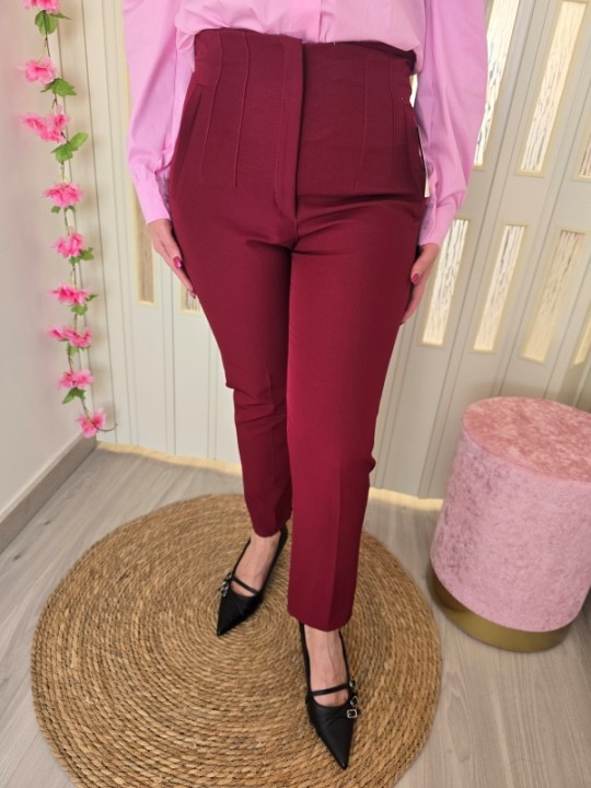 Pantalone bordeaux modello Capri, stretto. Chiusura con zip. Tasche finte.