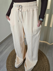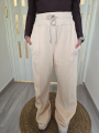 Tuta elasticizzata in vita con laccio, modello a palazzo.