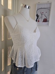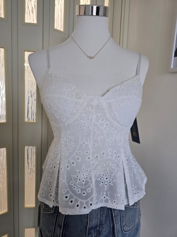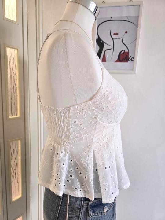 Top crop in pizzo san gallo, con bretelle regolabili, scollatura a cuore, con coppe imbottite.