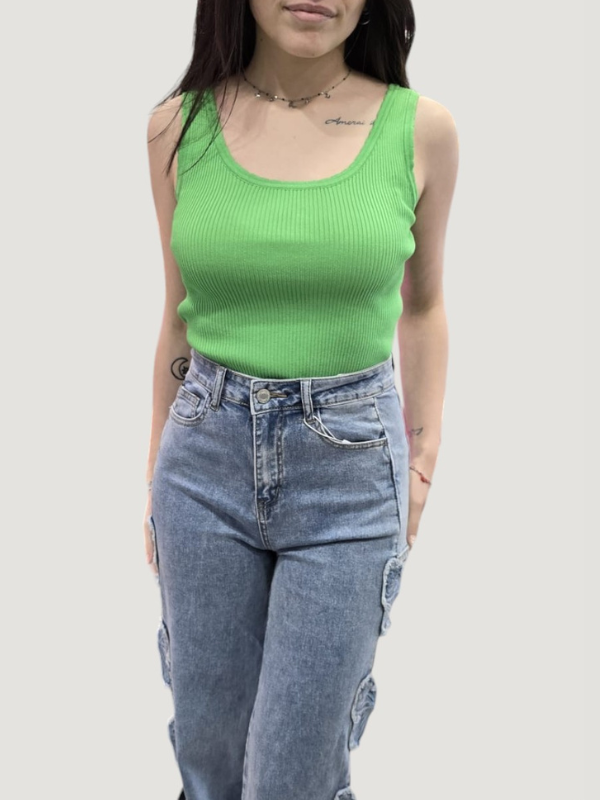 Top a costine semplice in diverse colorazioni, veste da una XS (38 ita) ad una L (44 ita) elasticizzato.