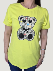 T-Shirt in due colorazioni con disegno orsetto con strass al centro.