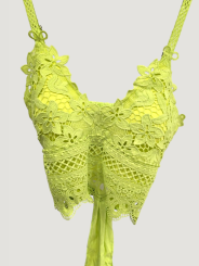 Top in pizzo con coppe imbottite, retro elasticizzato con fiocco regolabile.