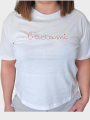 T-Shirt bianca con scritta ricamata Baciami rossa.